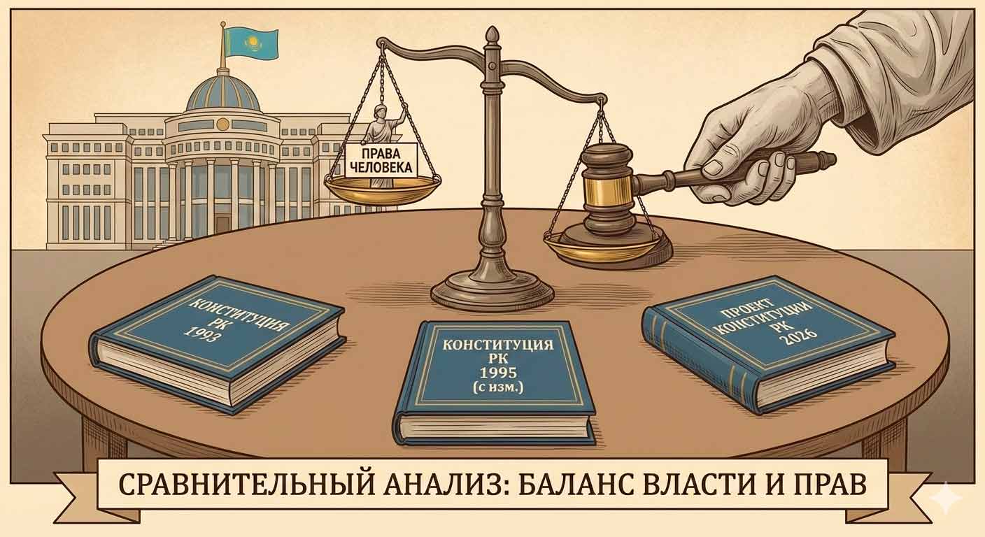 Краткий сравнительный анализ положений Конституции Республики Казахстан 1993 года, Конституции Республики Казахстан 1995 года с изменениями и дополнениями и проекта новой редакции Конституции Республики Казахстан по состоянию на 30.01.2026 г.: