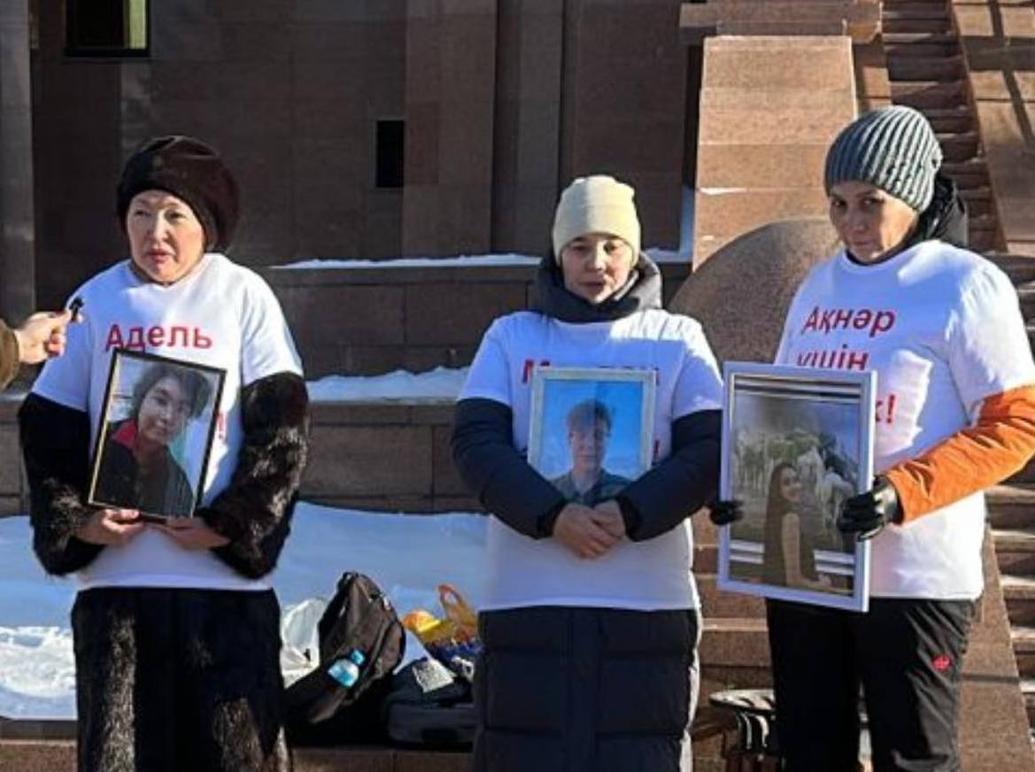 Матери держали портреты своих погибших детей. Среди них была школьница Адель Аканова, которую нашли повешенной во дворе своего дома в Алматы. Ее мать уверена в том, что дочь убили. В акции участвовала и мать Акнар Гульстан. Следствие утверждает, что девушка совершила суицид, выпрыгнув из окна многоэтажки в Алматы в июле 2024 года. Мать не верит в эту версию. Камера видеонаблюдения показывает: Акнар вытолкнули из окна.